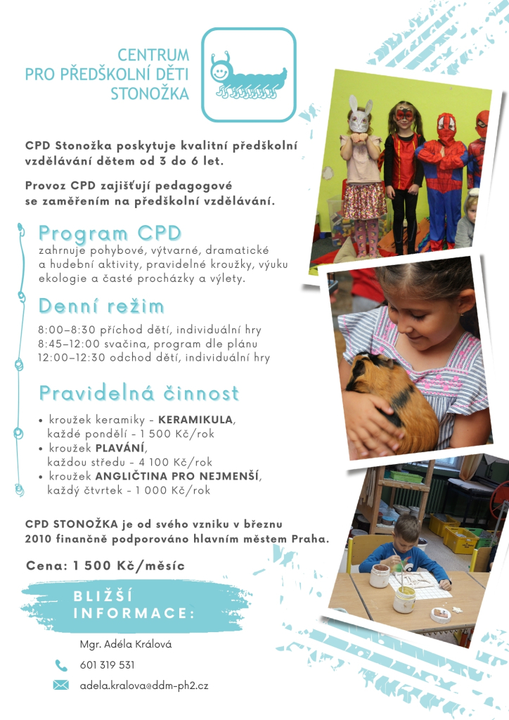 Kapacita CPD Stonožka je pro školní rok 2025–2026 naplněna, můžete se ale zapsat do náhradníků.