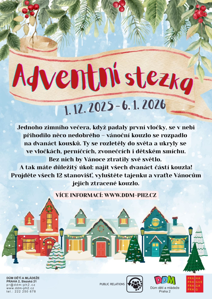 Budete potřebovat obyčejnou tužku a vytištěnou hrací kartu, kterou si můžete stáhnout a vytisknout (pozor, hrací karta má 2 strany), nebo si ji můžete vyzvednout na recepci DDM Praha 2 ve Slezské ulici 920/21 každý všední den ve 12:00-17:00 do 19. 12. 2025. Karta bude k dispozici od 1. 12. 2025.